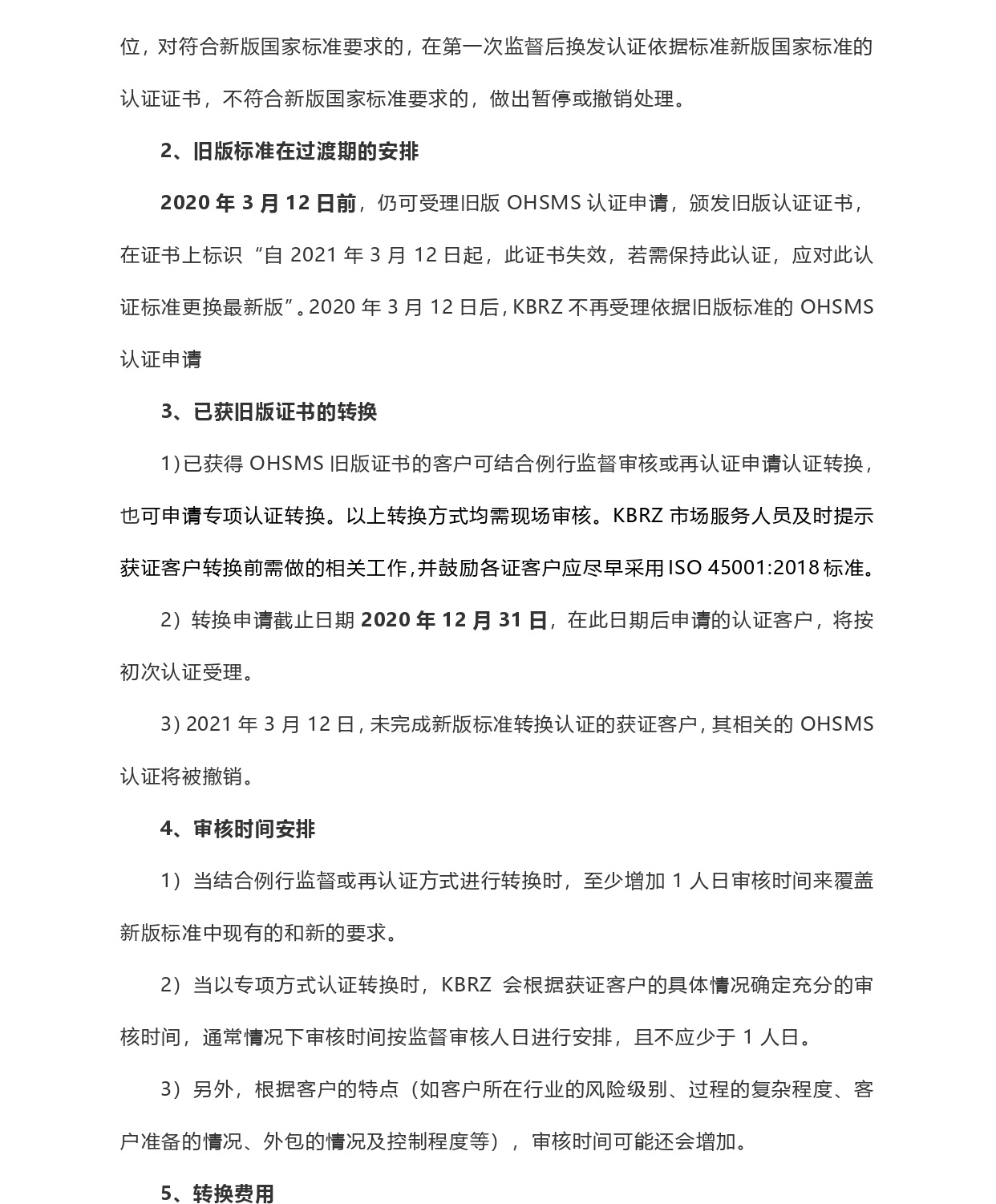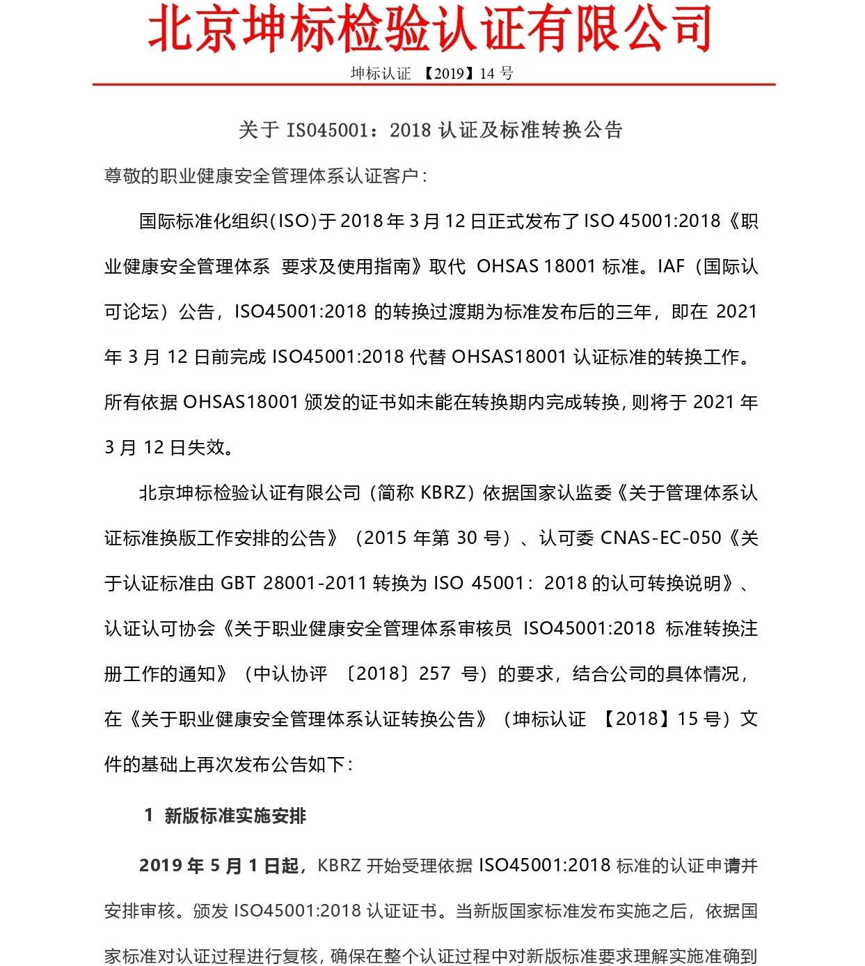關(guān)于職業(yè)健康安全管理體系認(rèn)證轉(zhuǎn)換公告